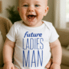 Mini-Mitspieler im Anmarsch! 🎮 Weißer Baby-Body mit dem Aufdruck FUTURE GAMING BUDDY und blauem Controller – sorgt sofort für Lacher und Geek-Stolz. Perfekt für Babyshower, Neugeborene und die ersten Gaming-Fotos! 📸