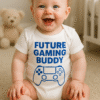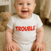 😂👶 Mini-Chef spricht für euch: LOOK HOW CUTE MY PARENTS USED TO BE. Der weiße Baby-Body mit blauem Print verwandelt jeden Besuch in Stand-up – besonders, wenn die Eltern mit Augenringen und Kaffee in der Hand auftauchen.