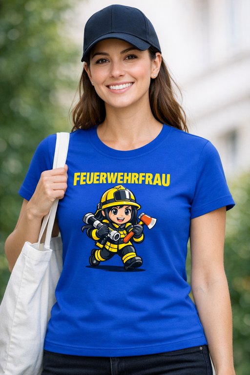 Dieses blaue T-Shirt mit kurzen Ärmeln und auffälligem gelbem Feuerwehrfrau-Motiv samt klarer Aufschrift FEUERWEHRFRAU ist wie eine Sirene: sichtbar, selbstbewusst und zu 100% du. Es zeigt, dass du mutig bist und immer bereit für Action – von der Übung über das Fest bis zum schnellen Kaffee, wenn der Melder wieder Ruhe gibt. Ideal für alle Tage, an denen du Teamgeist und eine Portion Augenzwinkern nach außen tragen willst.