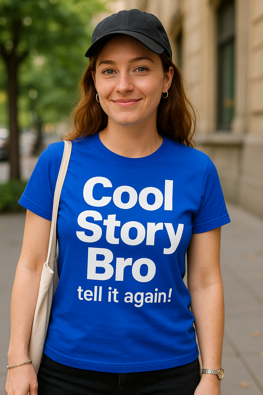 😎 Geschichte des Tages? Sag’s einfach mit dem Shirt: Cool Story Bro tell it again! Dieses blaue T‑Shirt mit weißem Print ist dein passiv-aggressives Mikrofon, wenn Gespräche zu lange dauern. Der Spruch wirkt wie eine Stand-up-Pointe – freundlich genug, dass alle lachen, und klar genug, um Monologe zu kürzen. Ideal für Treffen, Büro oder den nächsten meme-würdigen Moment.