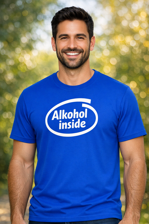 Lustiges T-Shirt „Alkohol inside“ (Blau)