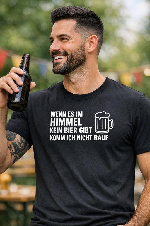 🍻 Wenn Bier im Spiel ist, kann der Himmel ruhig warten! Das T-Shirt mit dem Spruch „WENN ES IM HIMMEL KEIN BIER GIBT, KOMM ICH NICHT RAUF“ sagt’s so, wie du’s meinst.