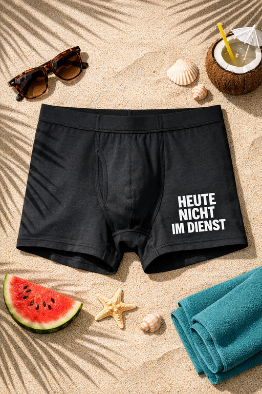 Diese schwarzen Herren-Boxershorts mit weißem Print sagen alles, bevor du überhaupt den Mund aufmachst. Der Spruch „HEUTE NICHT IM DIENST“ ist genau die richtige Mischung aus lässig, frech und witzig – ideal, um ein Grinsen zu provozieren und die Stimmung direkt aufzulockern. Bequem für zu Hause, mega als Gag-Geschenk und definitiv ein Highlight in deiner Schublade.