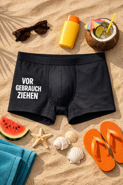 Herren-Boxershorts mit Ansage: „VOR GEBRAUCH ZIEHEN“.