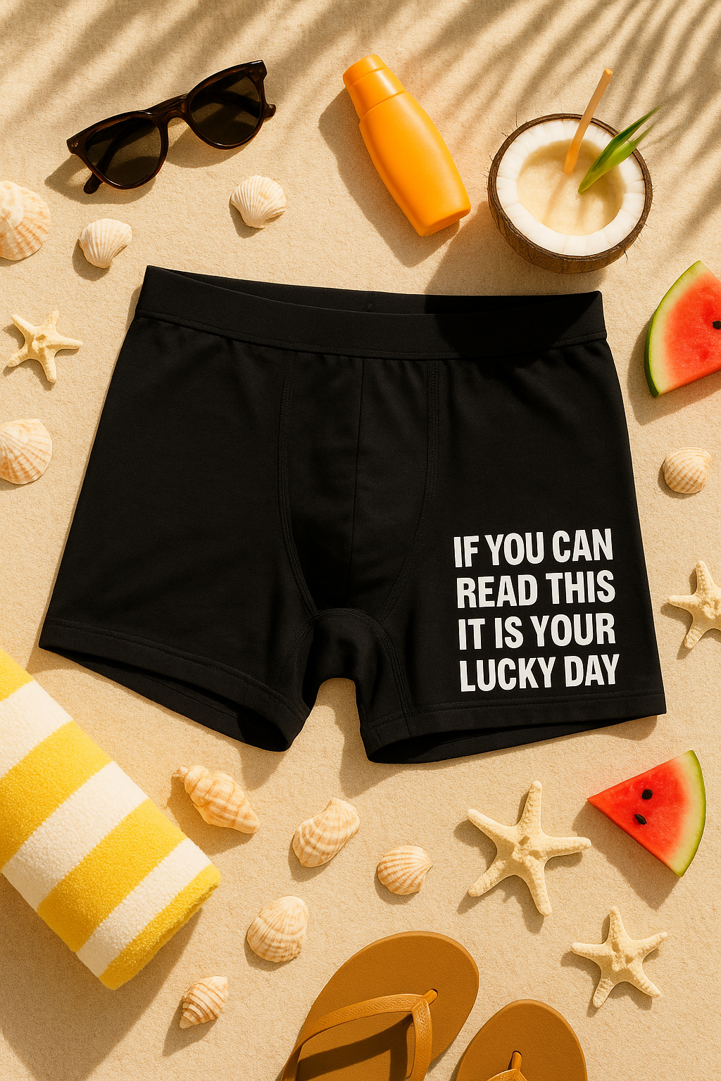 🍀 Kannst du das lesen, ist es dein Glückstag — IF YOU CAN READ THIS IT IS YOUR LUCKY DAY! Diese schwarzen Herren-Boxershorts mit frechem weißen Print sagen klar: Heute ist Glück angesagt!