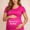 Dieses pinke, figurbetonte Umstands-T-Shirt mit kurzen Ärmeln ist deine humorvolle Antwort auf neugierige Blicke und unpassende Kommentare. Die Botschaft kommt freundlich rüber – aber deutlich genug, dass sie auch an der Supermarktkasse verstanden wird. Bequem, süß und genau passend zu deinem Schwangerschafts-Feeling.