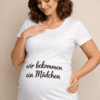 Dein Bauch hat neue News: Wir bekommen einen Jungen! Dieses weiße Umstands-T-Shirt macht die Ankündigung ganz ohne viele Worte – perfekt für Gender Reveal, Babyshower und süße Babybauch-Fotos.