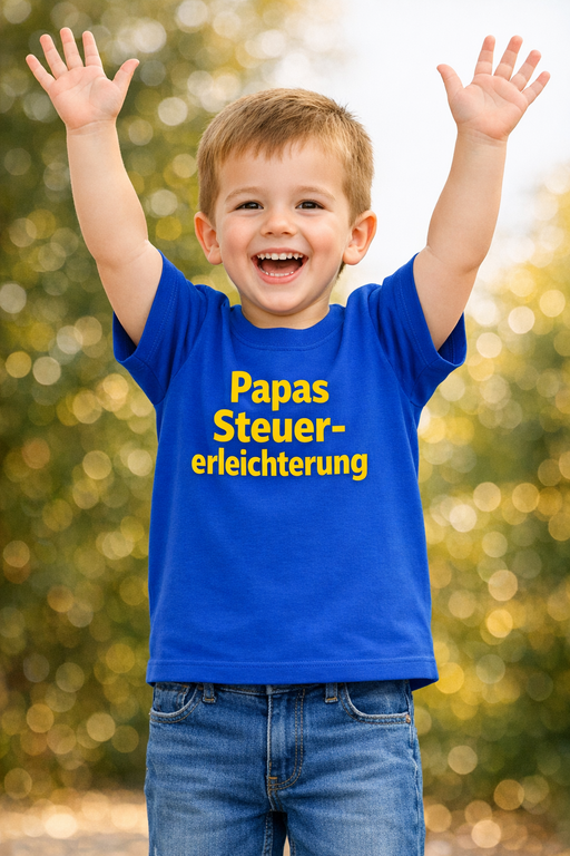 Lustiges Kinder T-Shirt „Papas Steuererleichterung“ (blau)