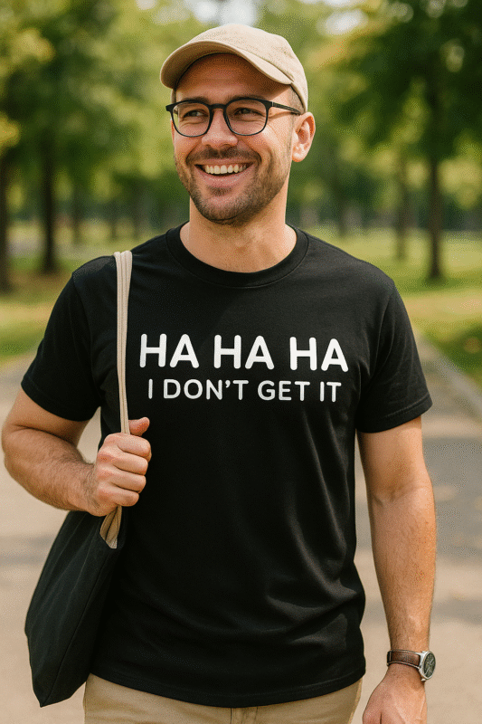 Humor ist eine starke Brücke zur Stimmung. Lustige Grafiken, verspielte Zeichnungen oder farbenfrohe Muster können den Tag aufhellen – nicht nur für dich, sondern auch für Menschen, denen du begegnest. Lachen ist ansteckend, und dein T-Shirt kann der Auslöser sein.